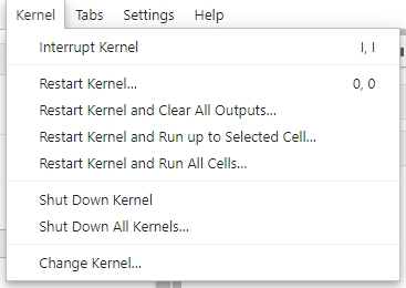 - Help: JupyterLab 및 커널 도움말 링크를 합니다.