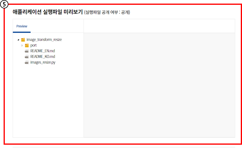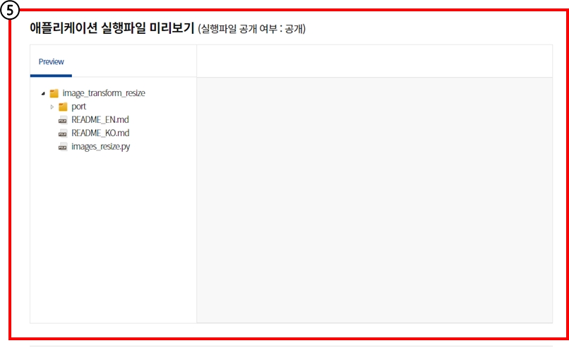 개발자가 등록한 애플리케이션 작동 테스트를 위한 포트별 샘플 파일 / 애플리케이션의 코드 및 매뉴얼 파일 등을 확인할 수 있습니다.
