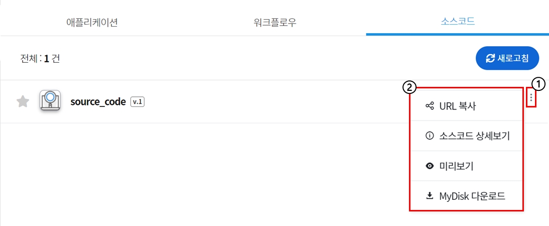 "소스코드 상세보기" : 새창으로 해당 소스코의 상세정보 화면으로 이동합니다.