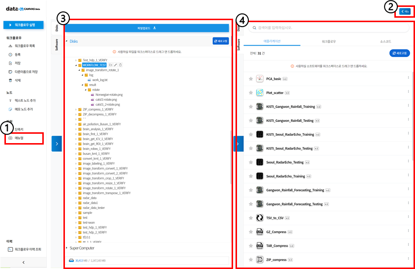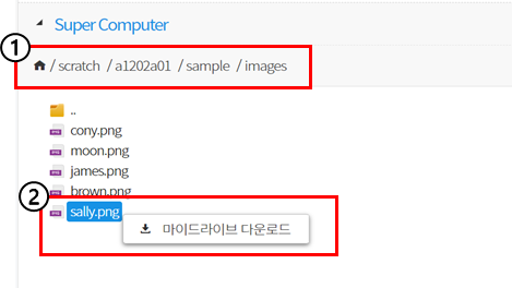 ① 현재 사용자가 위치하는 슈퍼컴퓨터 경로를 확인할 수 있습니다.