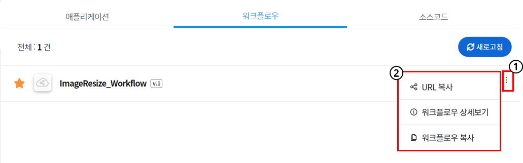 "워크플로우 상세보기" : 새창으로 해당 워크플로의 상세정보 화면으로 이동합니다.