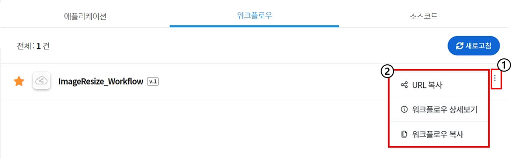 "워크플로우 복사" : 해당 워크플로우를 복사하여 다른이름으로 저장합니다.