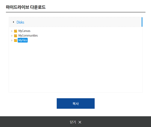 마이드라이브 경로를 선택하신 후 "①복사" 버튼 클릭 시 다운로드됩니다.